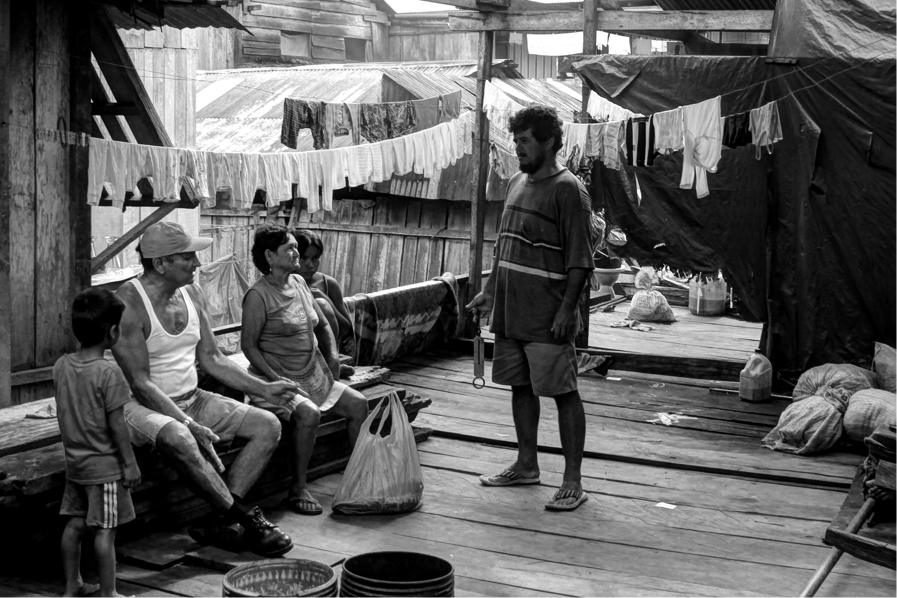 Miles de personas viven aisladas en pequeños poblados a orillas del río más grande del mundo, en medio de la inmensidad de la selva amazónica donde colindan Perú, Colombia y Brasil. Después de varios días de navegación desde las ciudades de Iquitos (Perú) o Manaus (Brasil), viejos cargueros repletos de víveres y pasajeros atracan en los puertos improvisados de estas alejadas comunidades (algunas de ellas pertenecientes a la secta religiosa de los israelitas). Para la tripulación de estos autobuses fluviales, el Amazonas es su rutina.