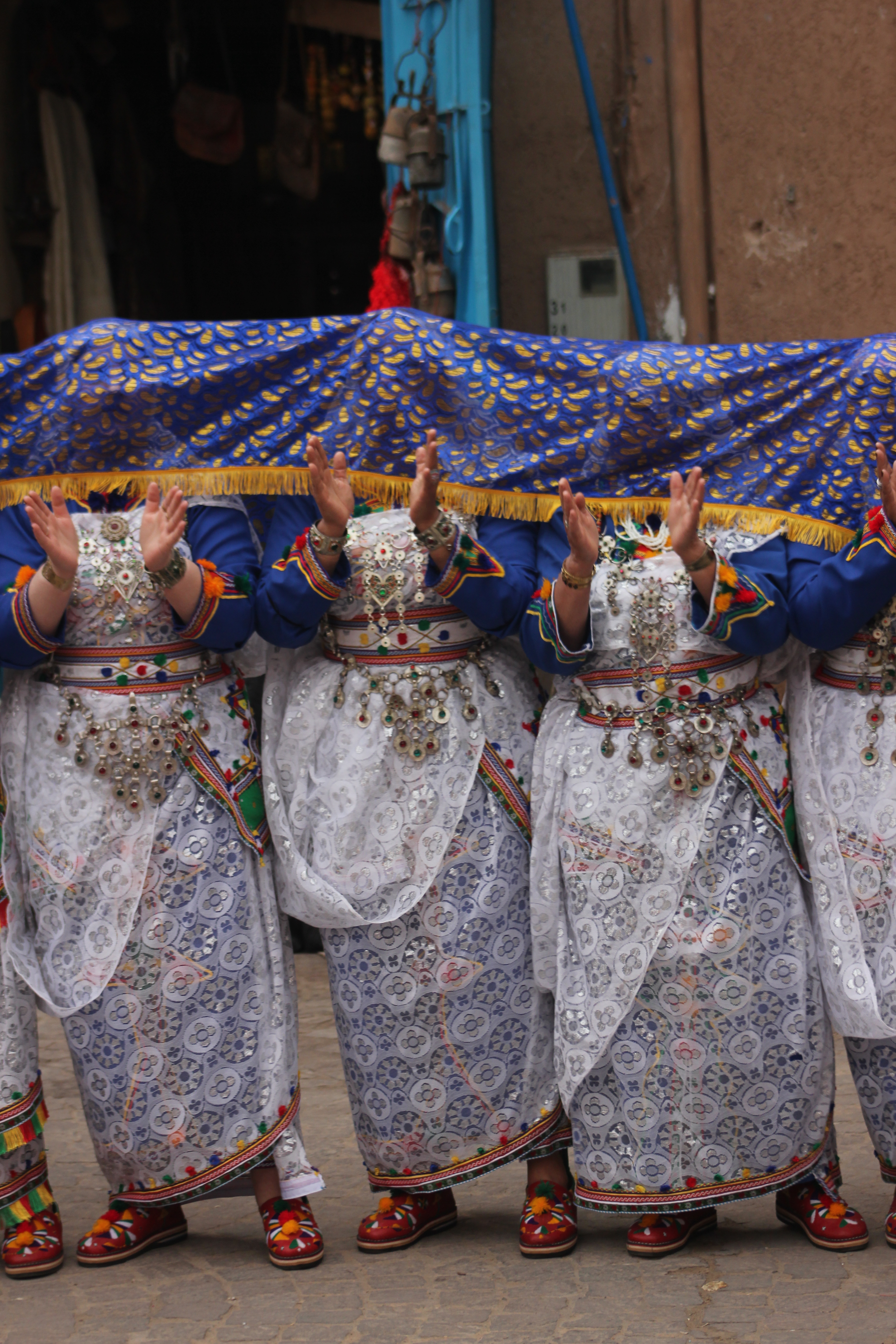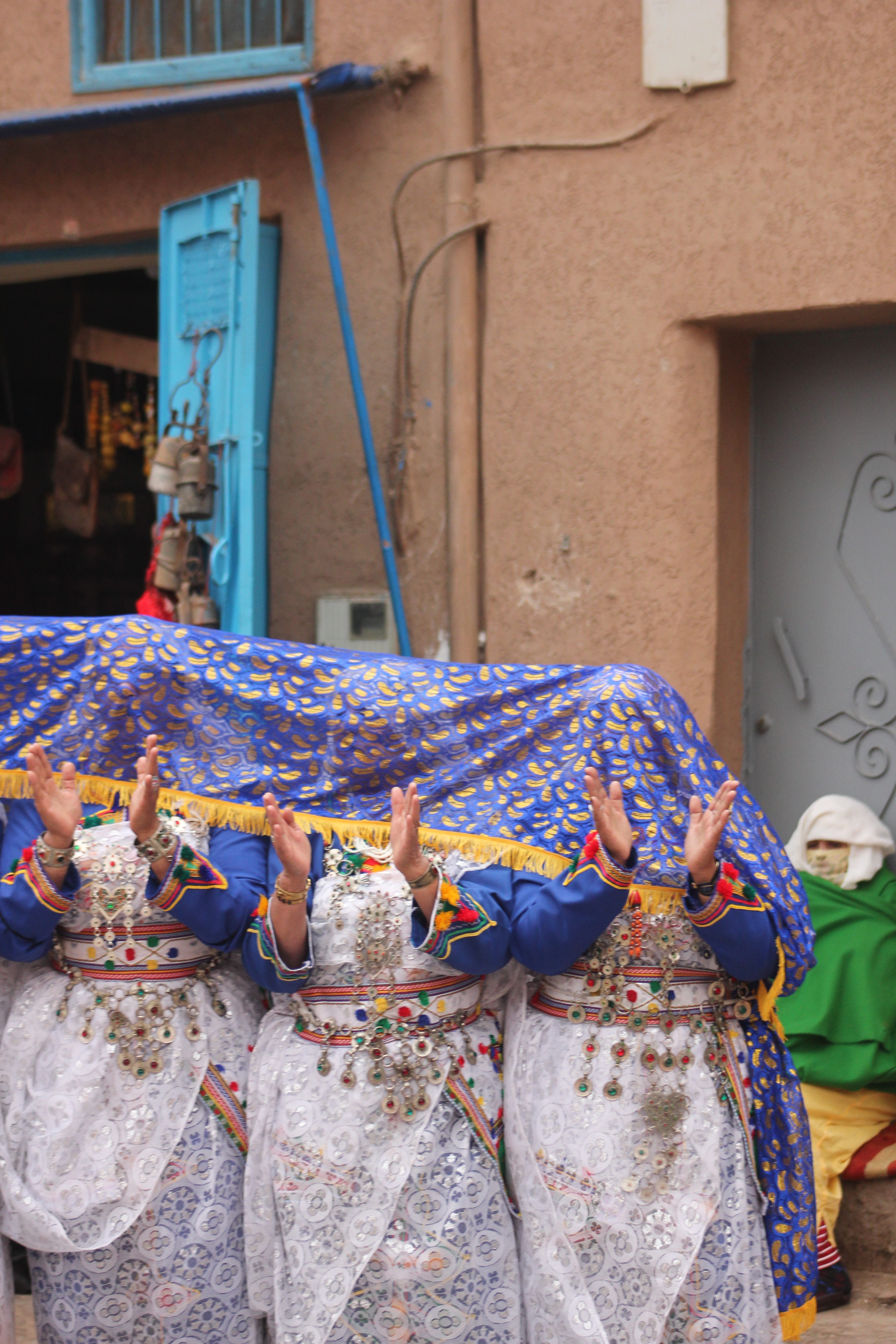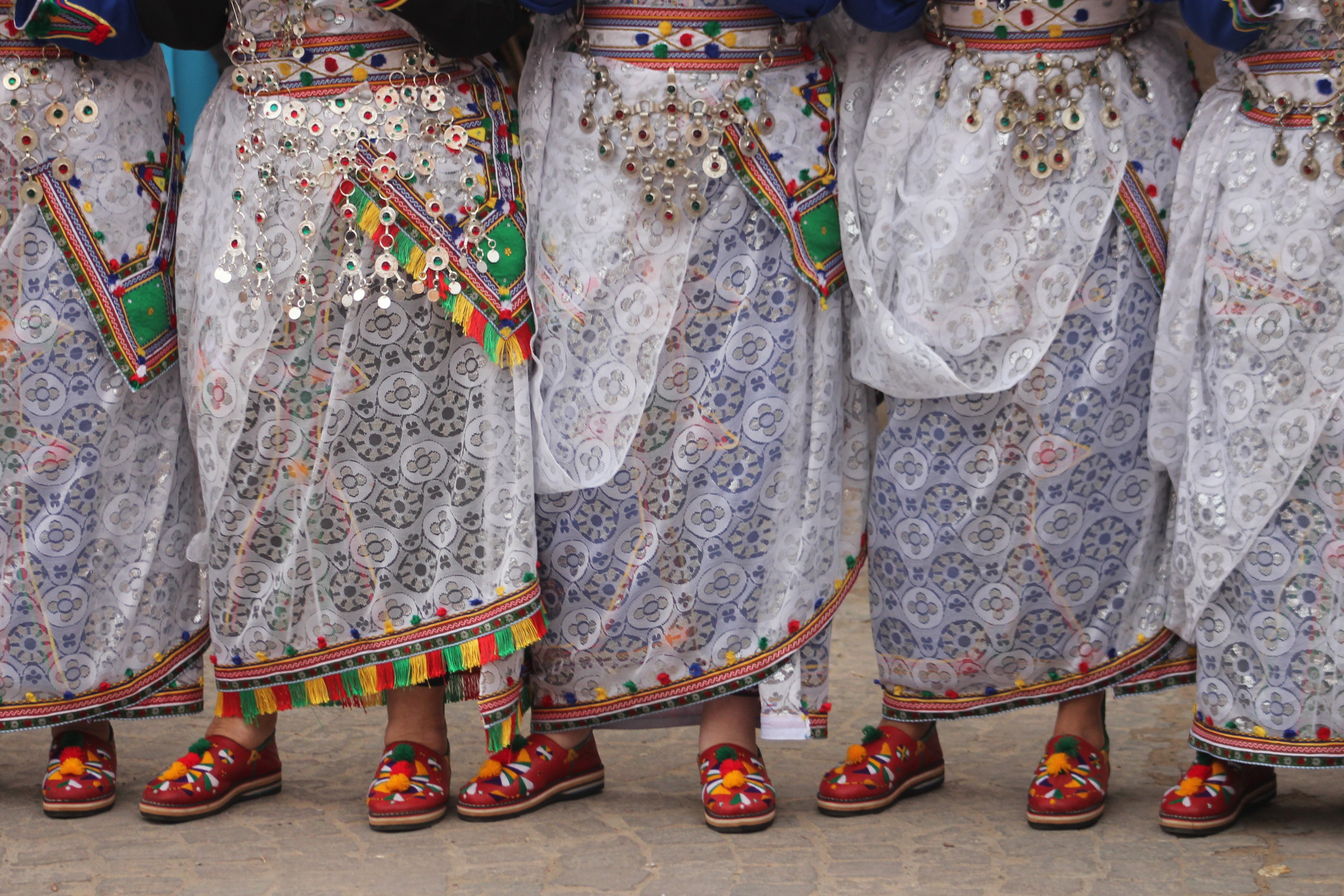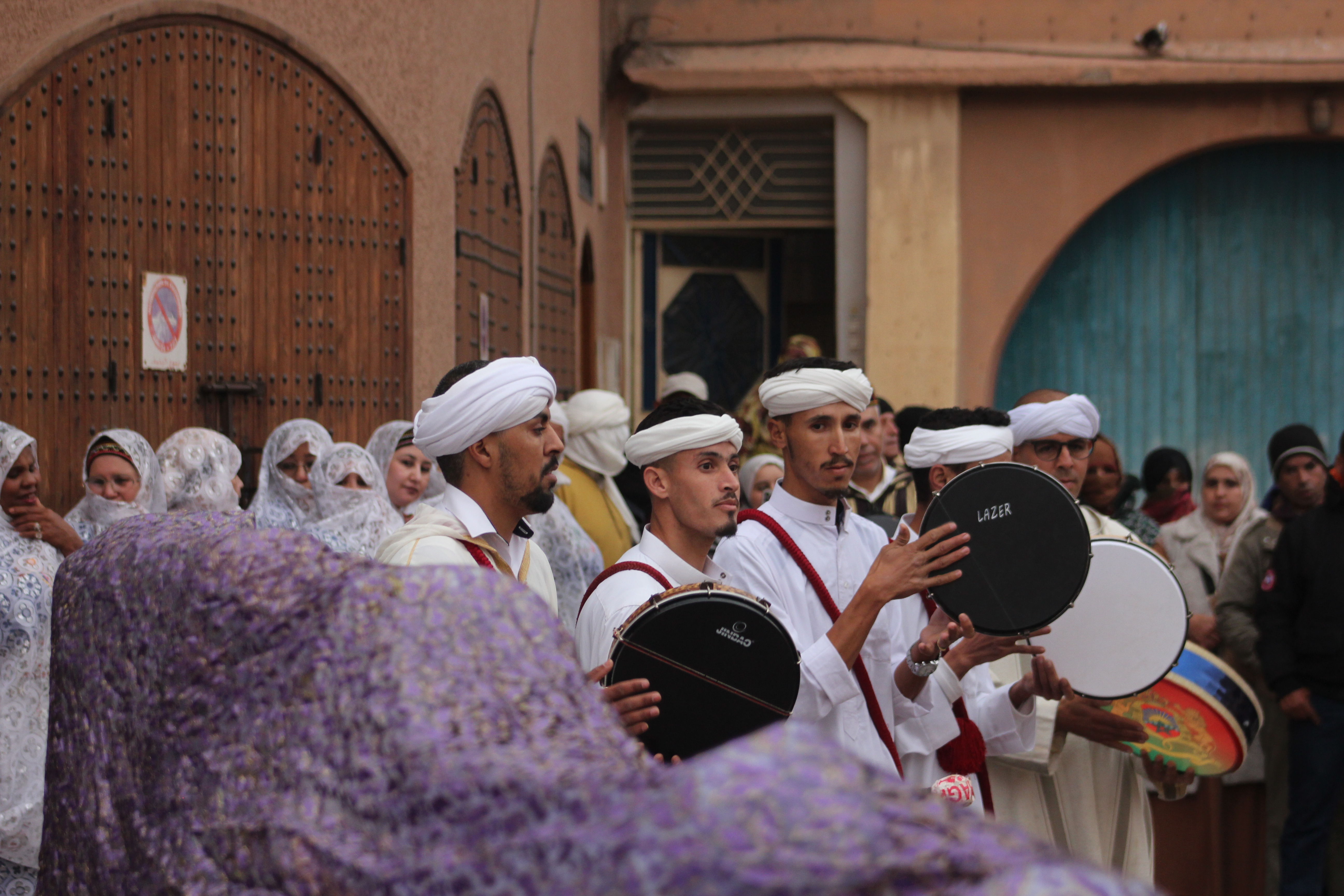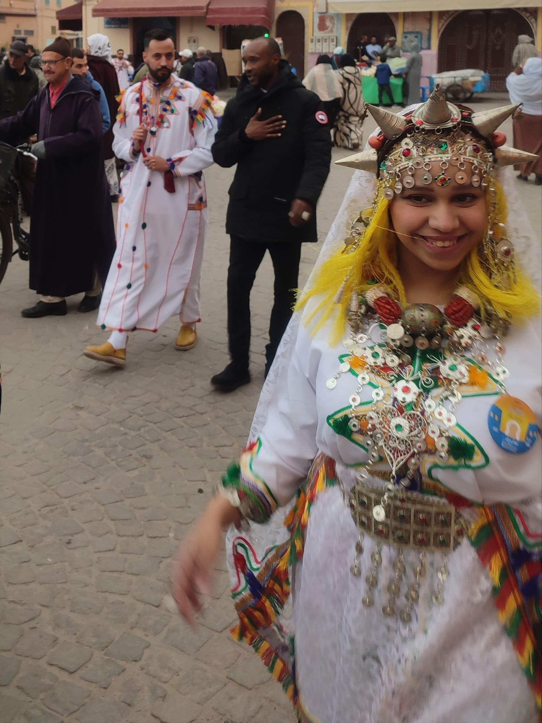 En Tiznit, las calles estrechas y las plazas del centro se llenan estos días de músicos, bailarines y artesanos venidos de toda la región de Sus-Masa, un cruce geográfico estratégico delimitado al norte por el Alto Atlas, al oeste por el océano Atlántico y que se extiende hacia el este y el sur por el Anti-Atlas hasta los confines presaharianos. Al caer la tarde, los espacios históricos de la ciudad, como la kasbah, se transforman en escenarios vivos que atraen a vecinos y visitantes para sumergirse en el pulso de la fiesta: espectáculos artísticos y patrimoniales, talleres de lectura y caligrafía, exposiciones artesanales, artes culinarias y veladas musicales improvisadas. También los hogares se convierten en espacios de reunión con comidas familiares donde resuenan los cantos, los laúdes, las cuerdas frotadas y la percusión; salvo cuando las llamadas a la oración, por un instante, lo detienen todo. La medina es un estallido de olores y colores, de voces y sonidos, de mujeres con coloridos vestidos y profusión de adornos en tocados y colgantes, de corros de espectadores que aplauden rítmicamente la música de los iderraben, de adolescentes que corren tras los personajes enmascarados del carnaval Imaachar; un lugar de orgullosa reivindicación cultural.